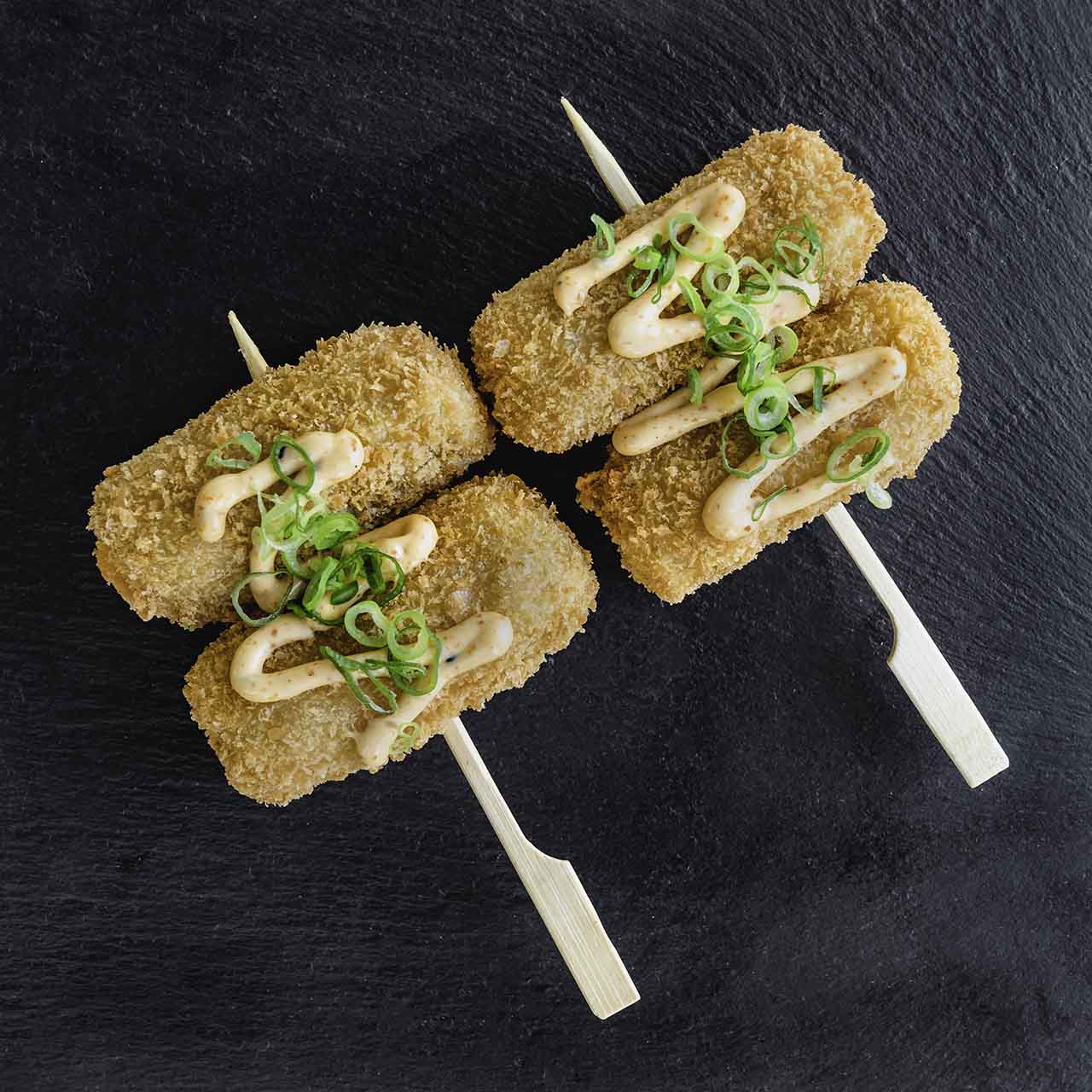 Kylling og cheddar i sprød pankopanering samt chilimayo